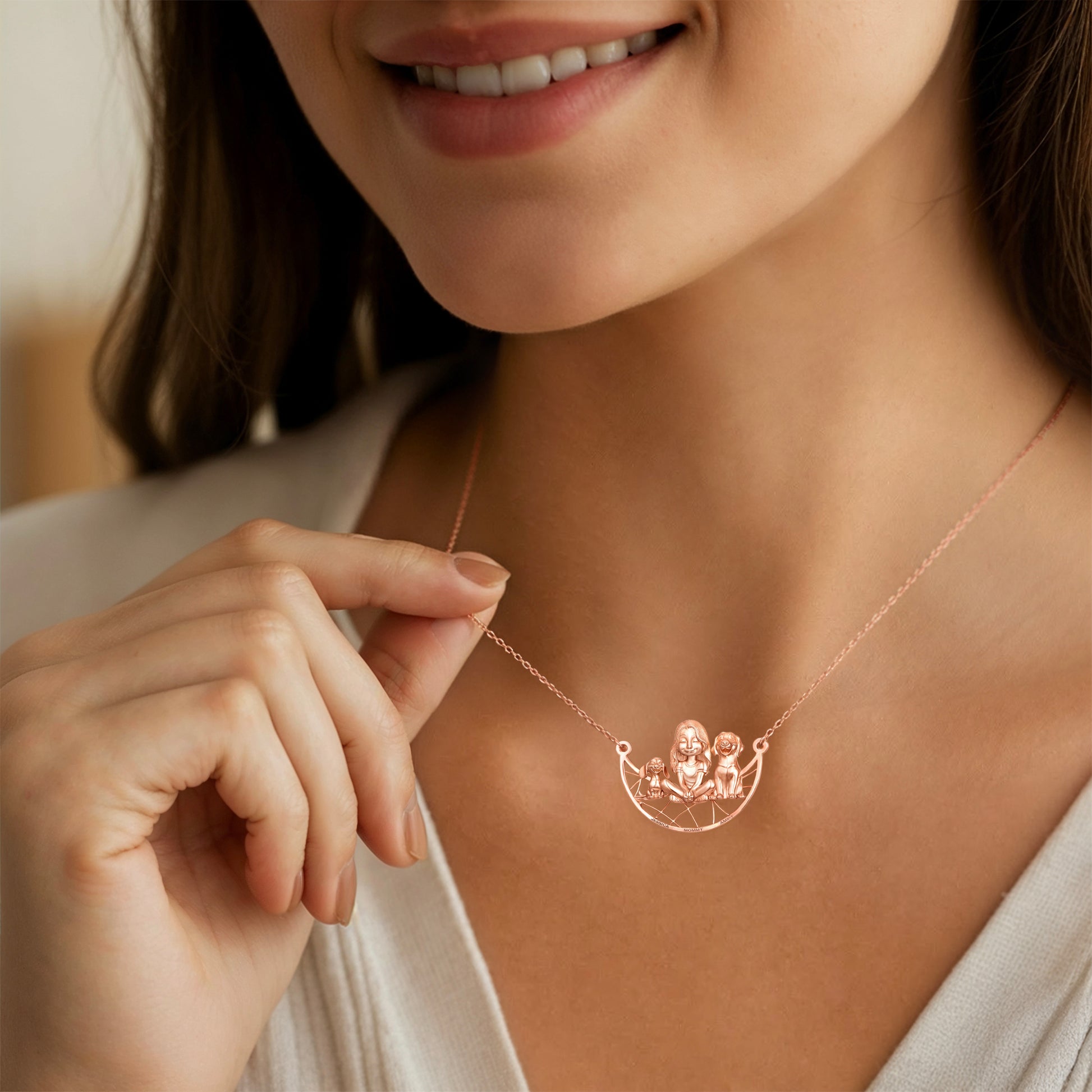 Soulyshine Personalized Girl And Her Pets - Handmade Necklace in Silver/14K Gold Vermeil/Plating