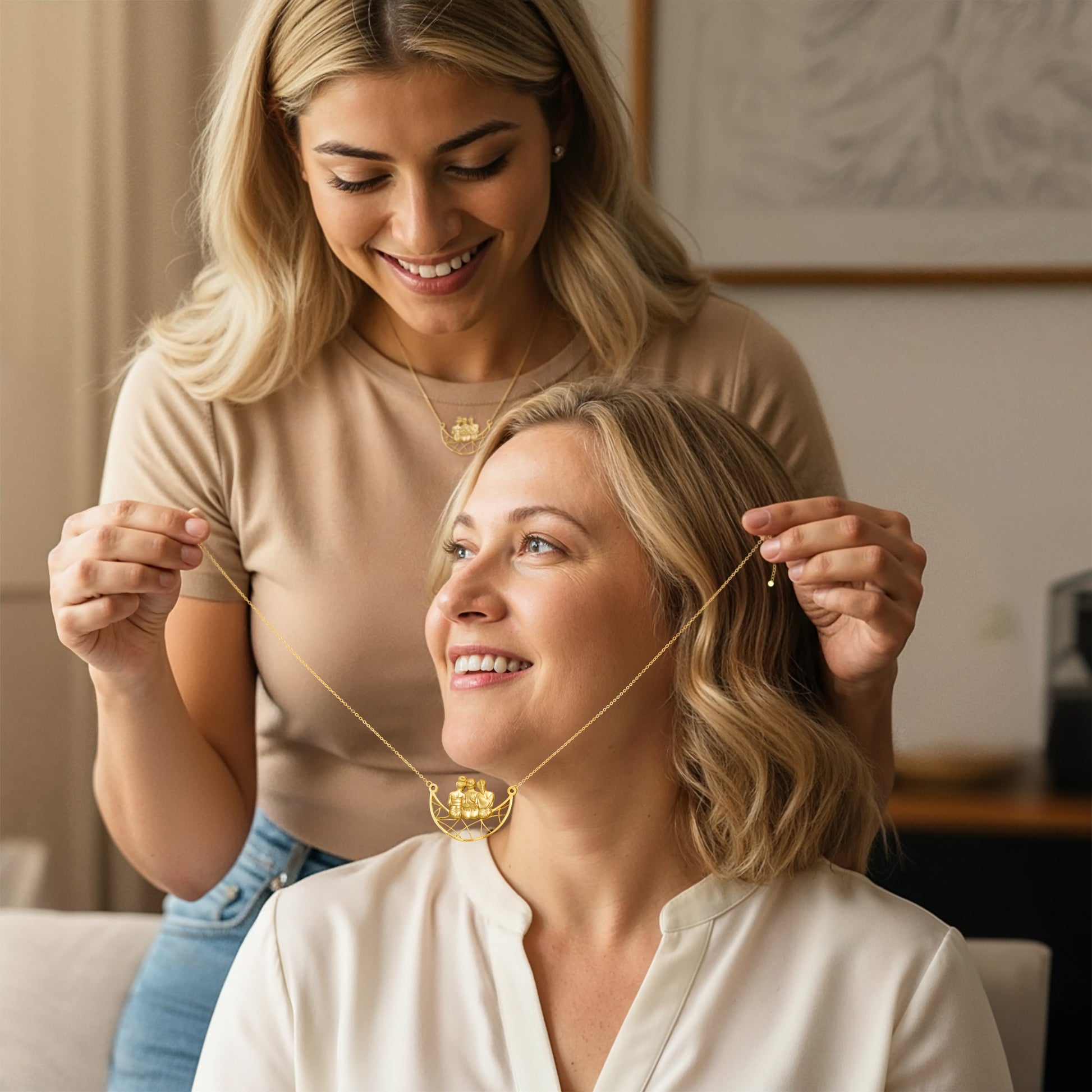 Soulyshine Mother & Daughter On The Moon Personalized - Handmade Necklace in Silver/14K Gold Vermeil