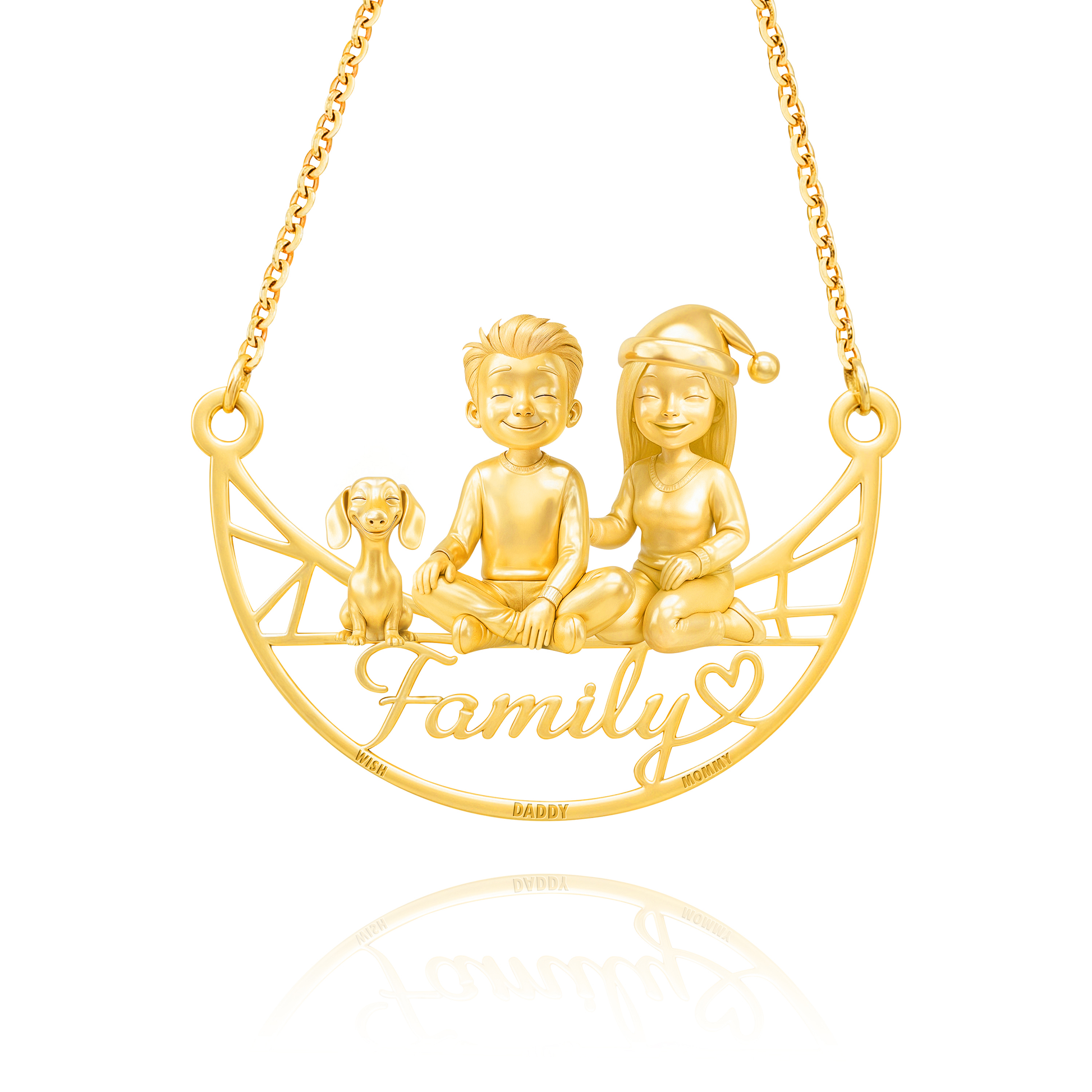 The Family & Pets Heart Necklace is where your favorite people — and the little paws who complete your story — come together in one timeless keepsake. Every figure is sculpted with warmth, capturing the gentle closeness of family moments: a child’s giggle, a partner’s quiet support, a pet’s loyal company.