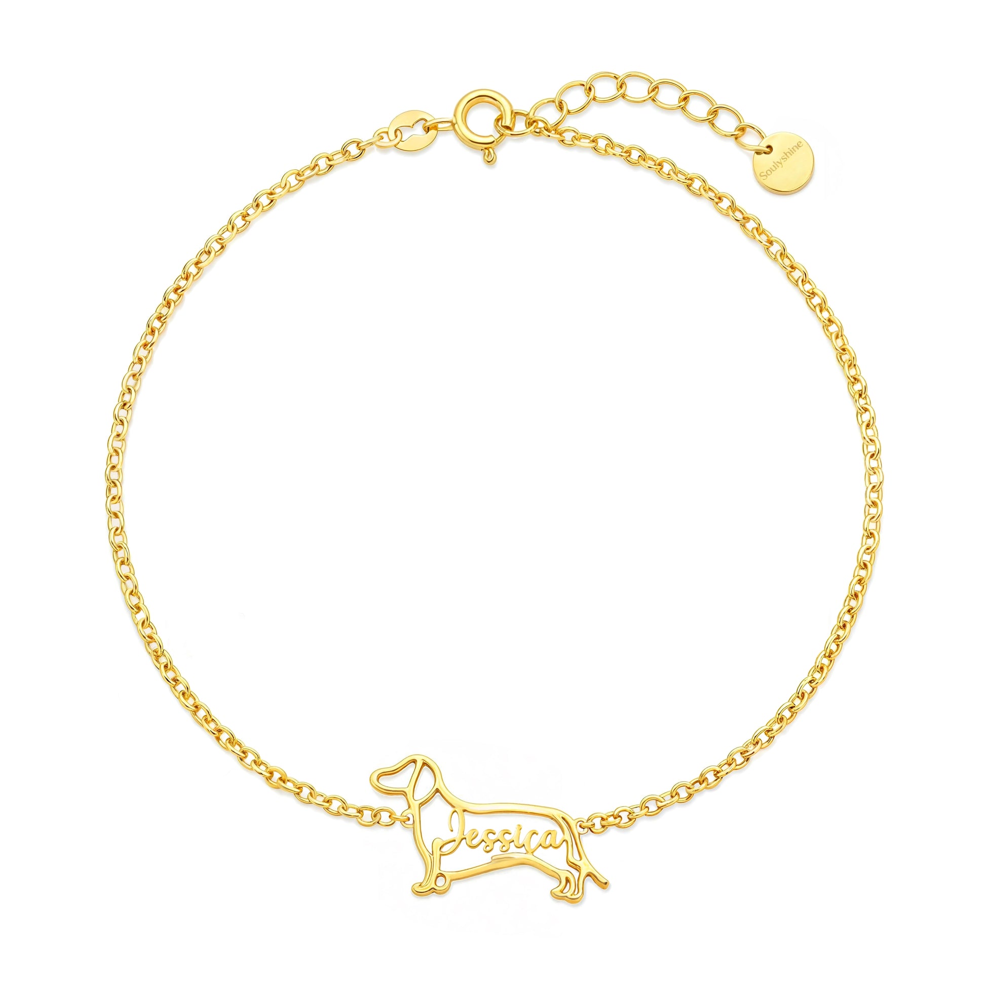 This personalized dog bracelet is handcrafted to capture the unique silhouette of your beloved pup, with their name delicately shaped into the design. Each charm represents a moment, a memory, and the unconditional love you share.